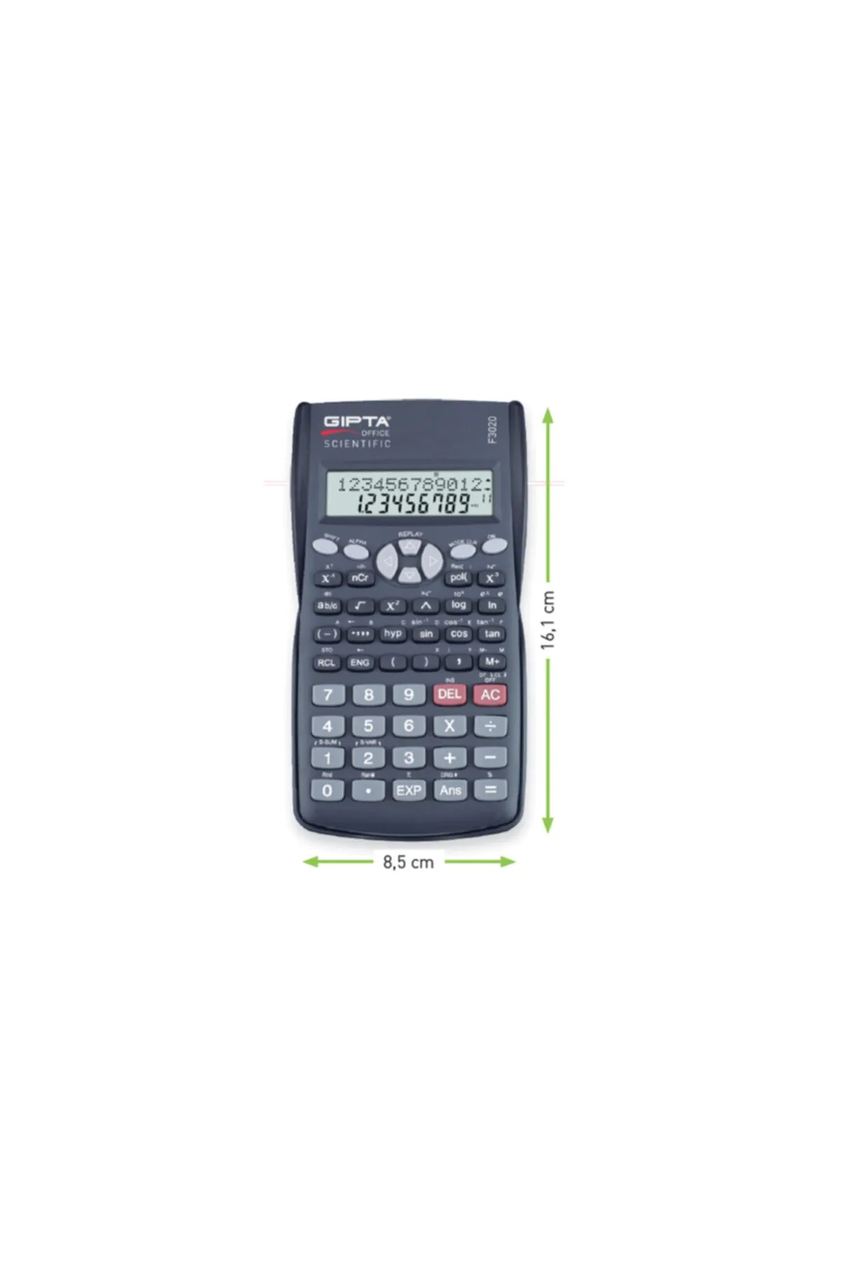 Gıpta Hesap Makinası 12 Digit Fonksiyonlu F3020 ? Ürün Özellikleri : ? Bilimsel hesap makinası 240 fonksiyon 10+2 hane 2 satır ekran Dayanıklı plastik tuşlar ? Marka : Gıpta ? Ürün Kodu : 4-F302000-5001 ? Renk : Siyah ? Tekli Barkodu : 8697236992999 ? Menşei : Türkiye