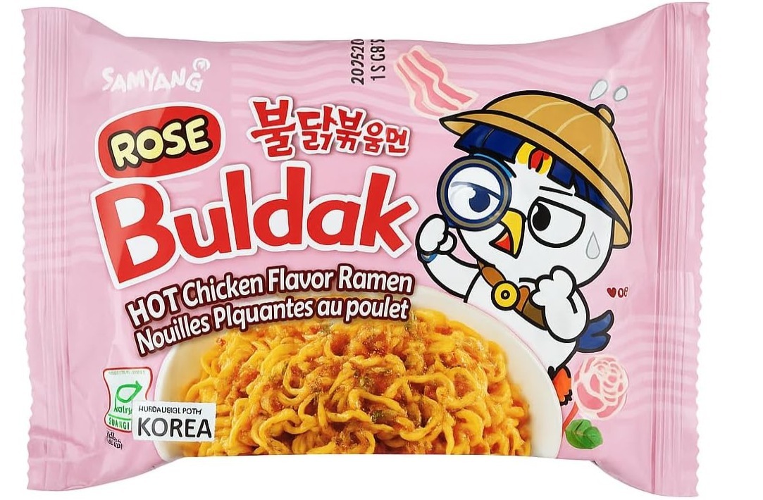 Buldak Rose Ramen, zengin krema sosu ve acılı baharatlı tavuk aromasının birleşimiyle yapılmıştır. Yumuşak krema sosuyla daha lezzetli hale gelen ve baharatlı tada sahip bir eriştedir. Hafif baharatlı olduğu için baharatlı yiyecekleri yiyemeyenler bile tereddüt etmeden yiyebilir.